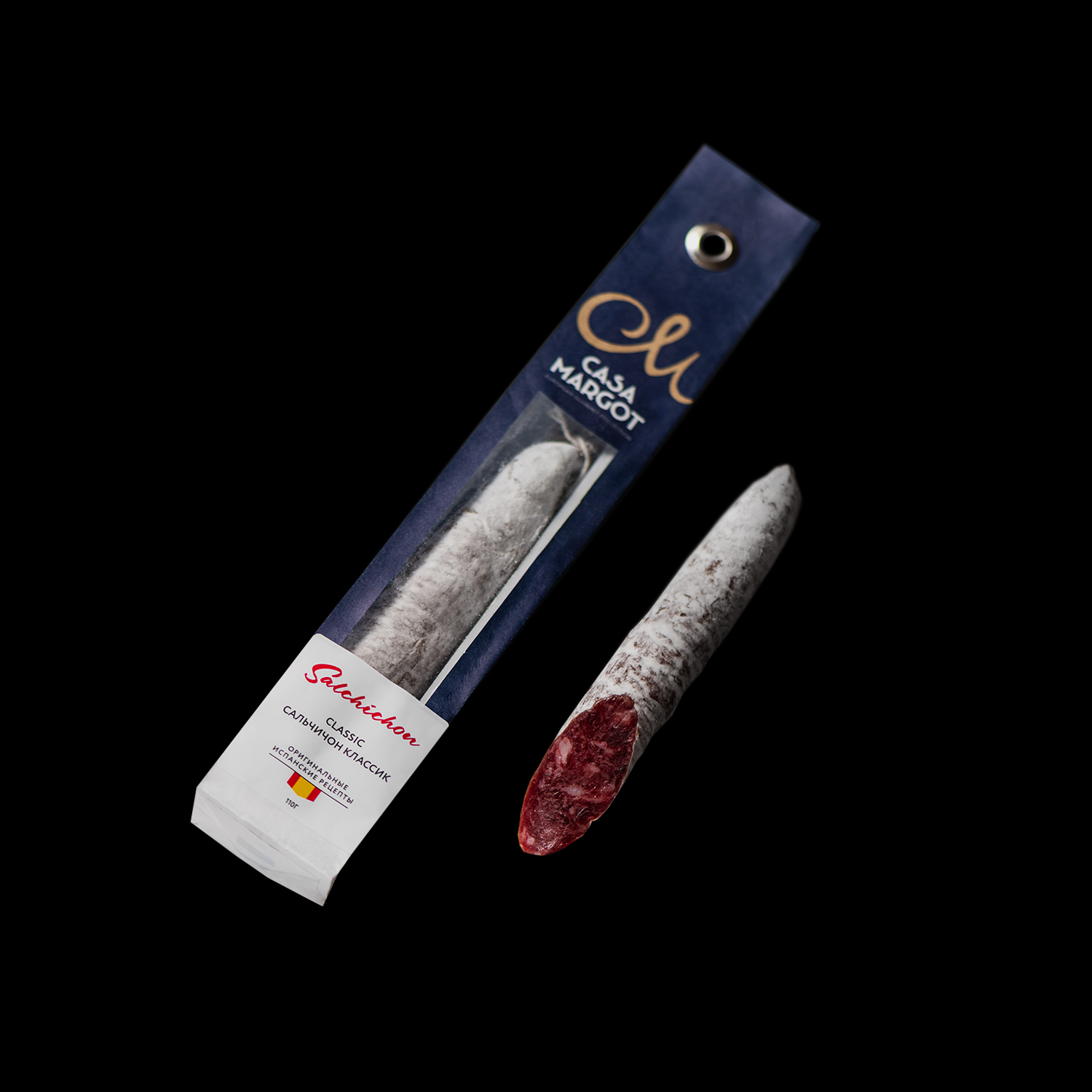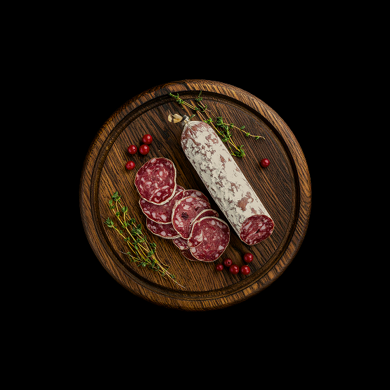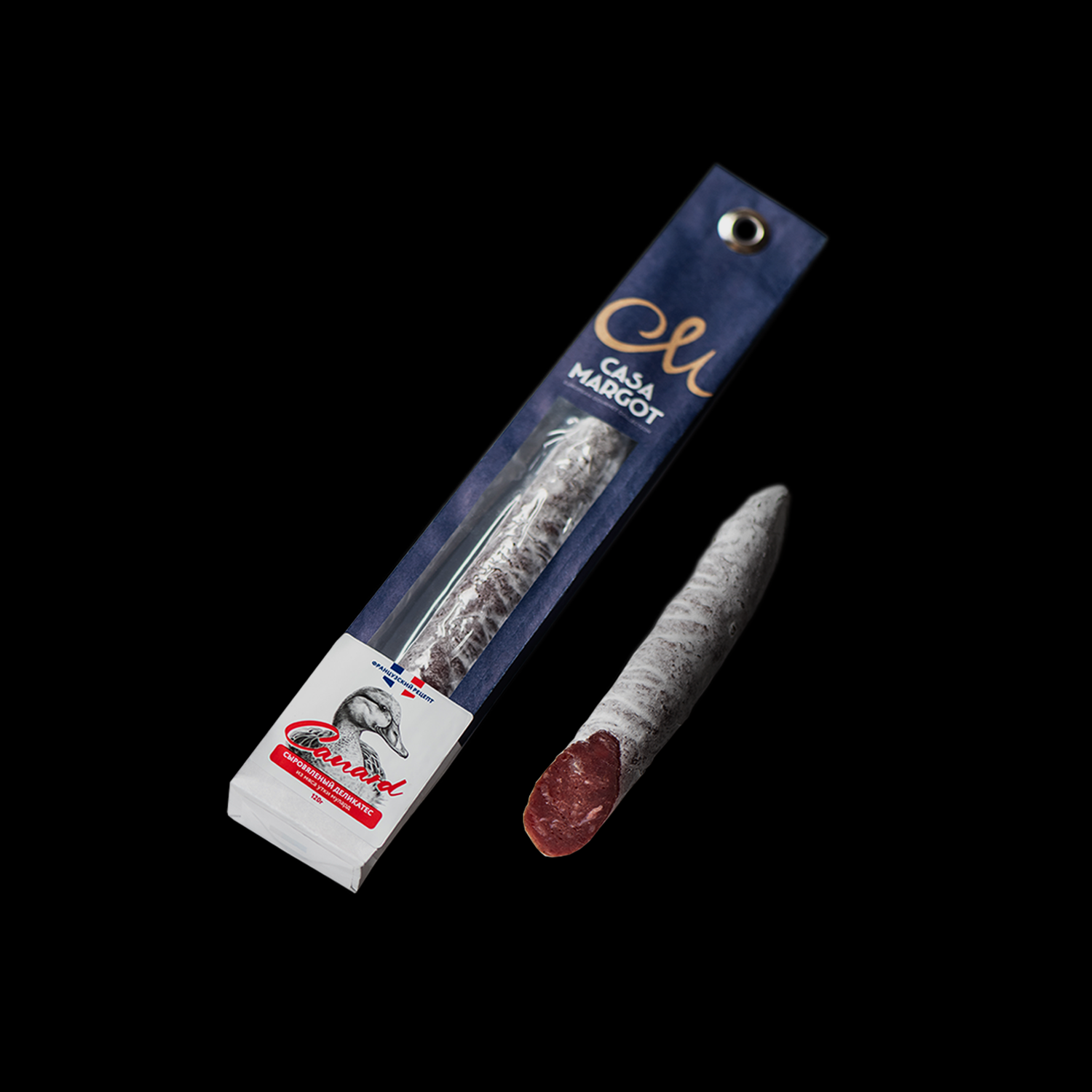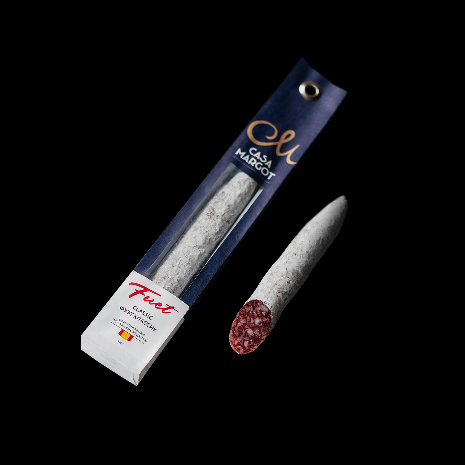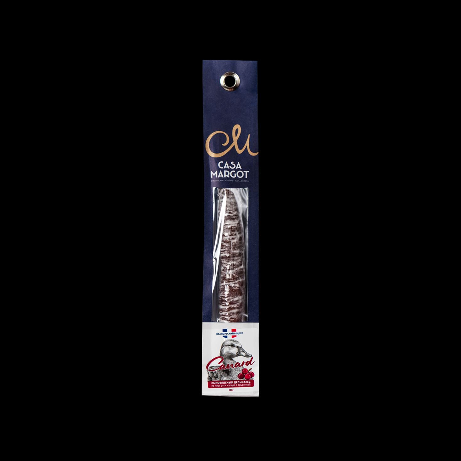 Изготовленная по оригинальной рецептуре, с добавлением ароматного мускатного ореха и кориандра, «Колбаса из мяса лося» Casa Margot станет украшением мясного плато и придется по вкусу истинным ценителям деликатесов из мяса дичи.