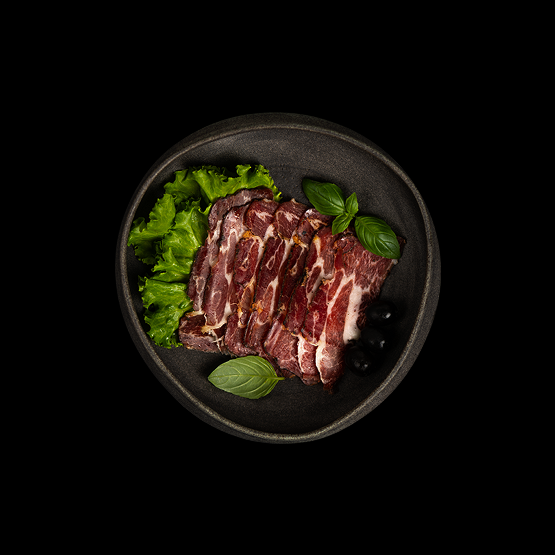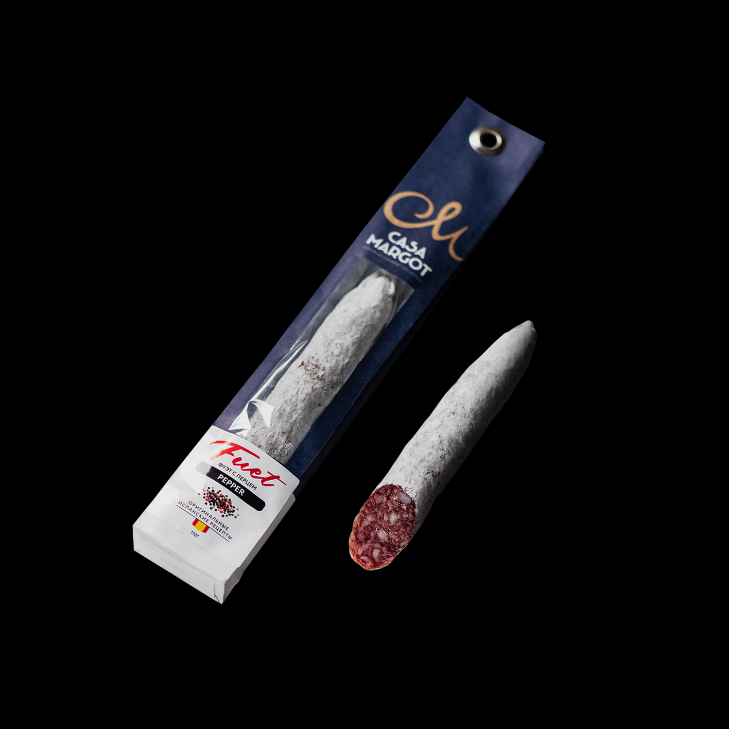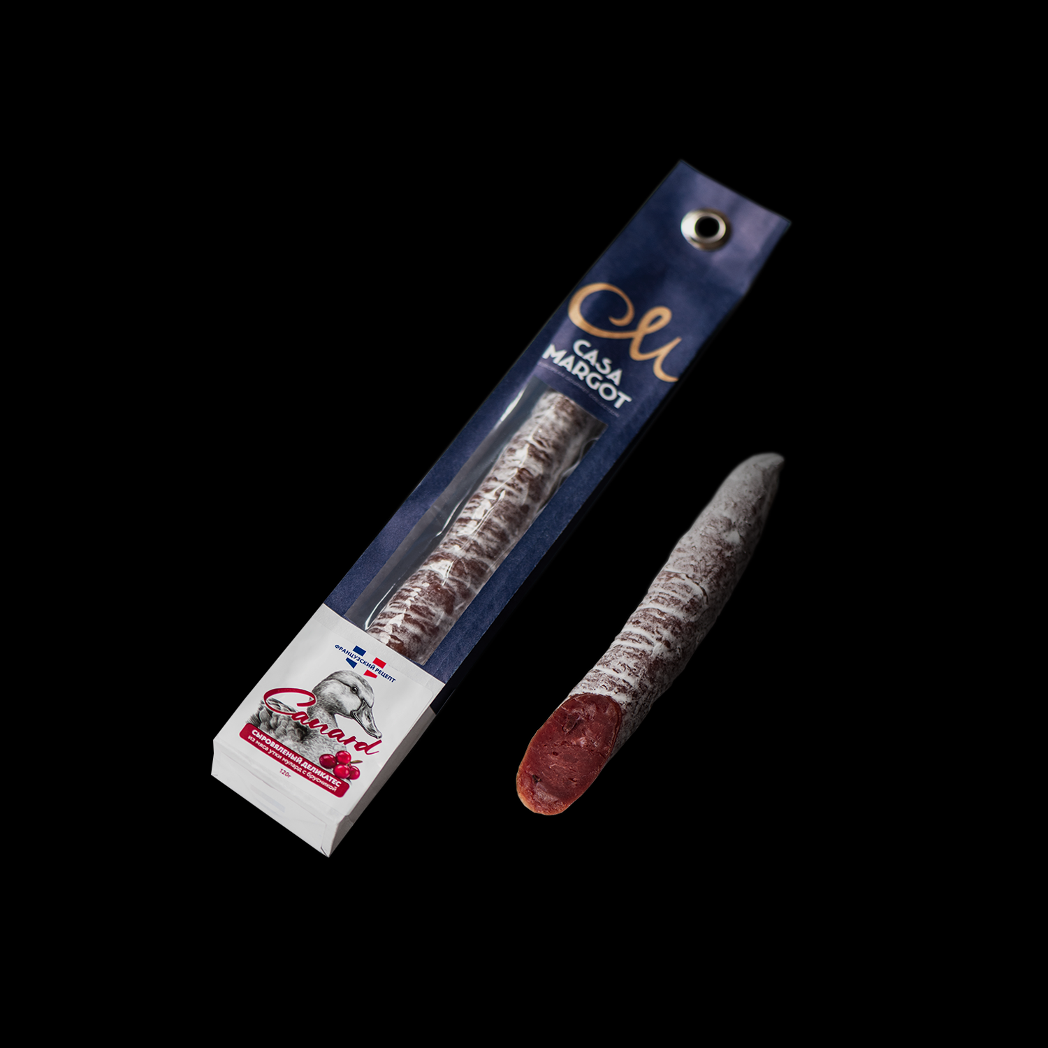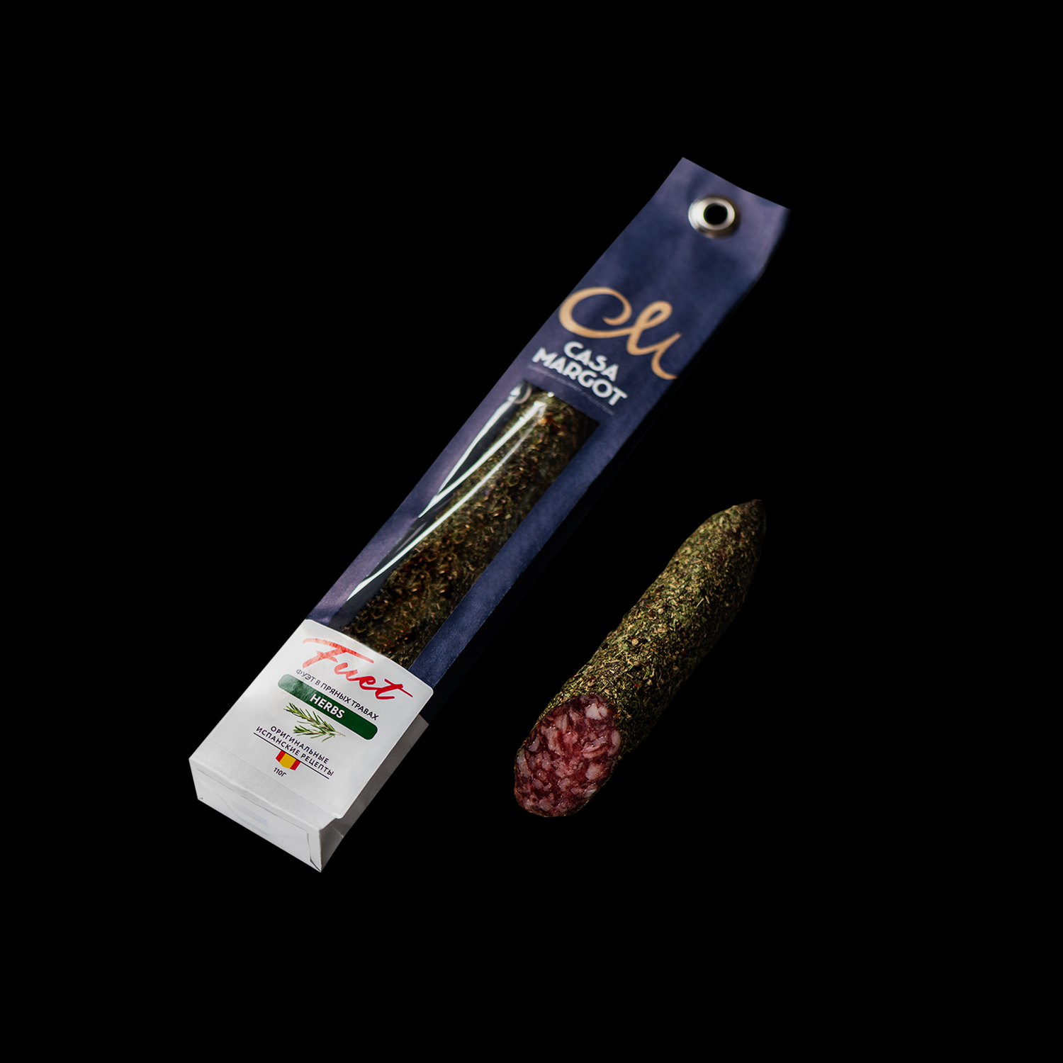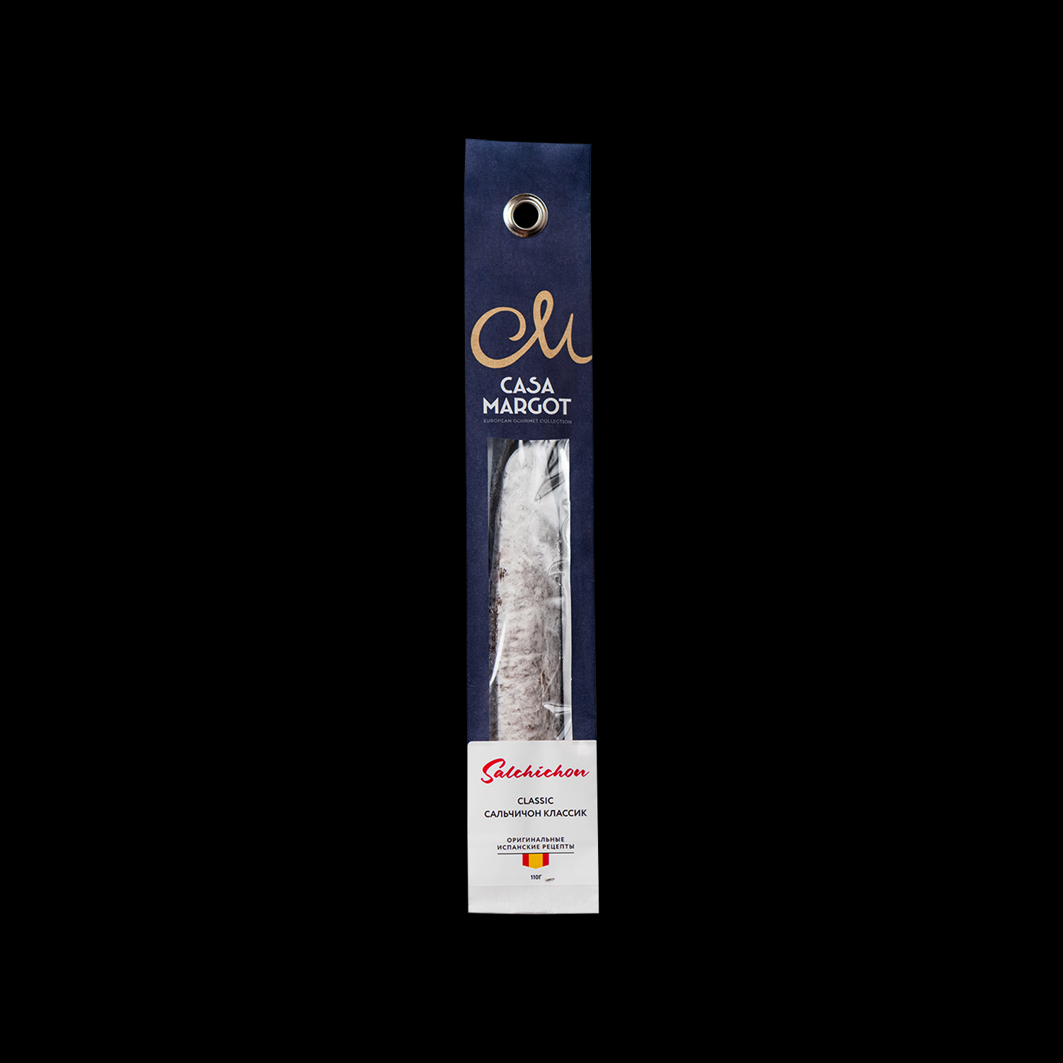 Изготовленная по оригинальной рецептуре, с добавлением ароматного мускатного ореха и кориандра, «Колбаса из мяса лося» Casa Margot станет украшением мясного плато и придется по вкусу истинным ценителям деликатесов из мяса дичи.
