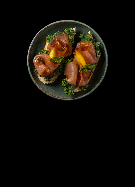 Мы рекомендуем подавать ее на брускетте из зернового хлеба с вяленой клюквой и кедровыми орешками.